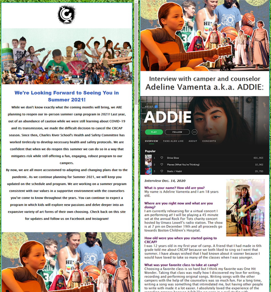 Social media content I created for a summer arts program in Dover, Massachusetts. Videos include documentaries and interviews.