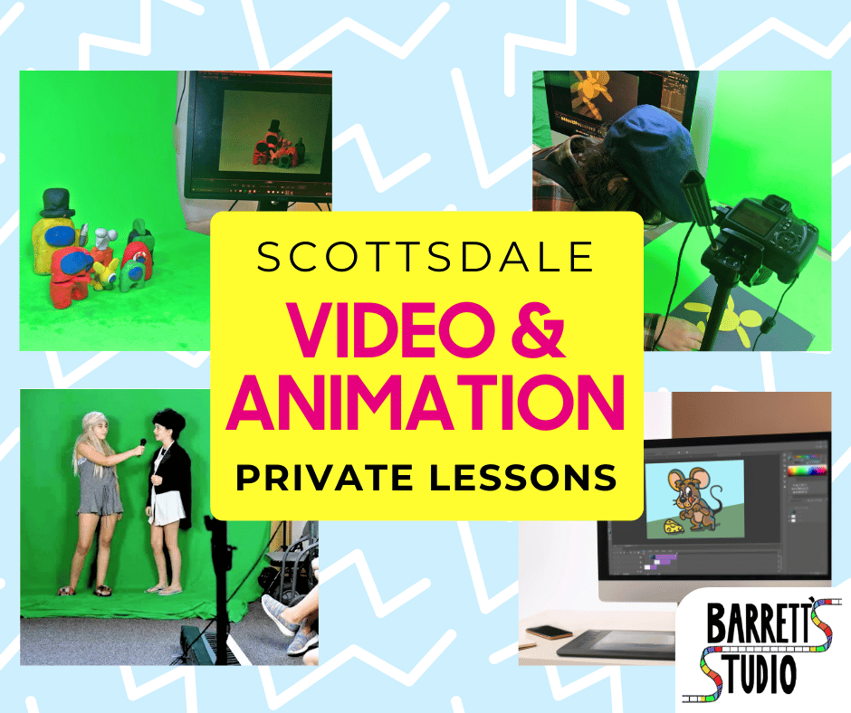 At Barrett’s Studio we offer private lessons in Video Editing, Computer Animation, and Claymation to kids ages 5-15 in Scottsdale, AZ! Sign-up for a private lesson in your home or our studio for an one-on-one masterclass in video and/or animation.